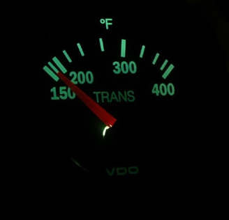 300° F= Damage occurs to internal transmission parts, including warpage of metal parts, degradation of clutches, and melting of seals. Transmission oil oxidizes, (forming varnish-like substances causing further clutch slippage and compounding heat build up) and transmission oil life is extremely short.