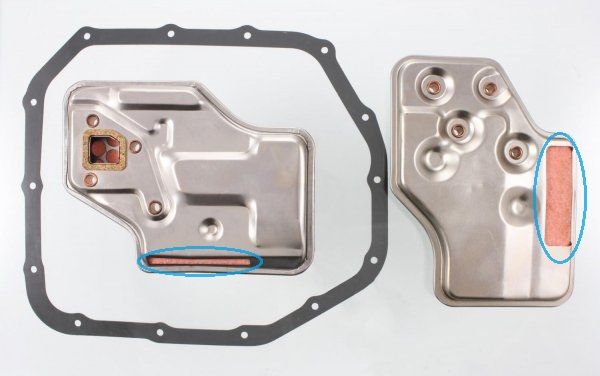 The transmission Filter and gasket are the same for either of the transmissions. If your looking for a cheaper option then you need to get a filter that has two inlets like whats circled in the images. The part number of ones that will work is the Rock Auto PIONEER 745062 and NAPA ATP 19260.