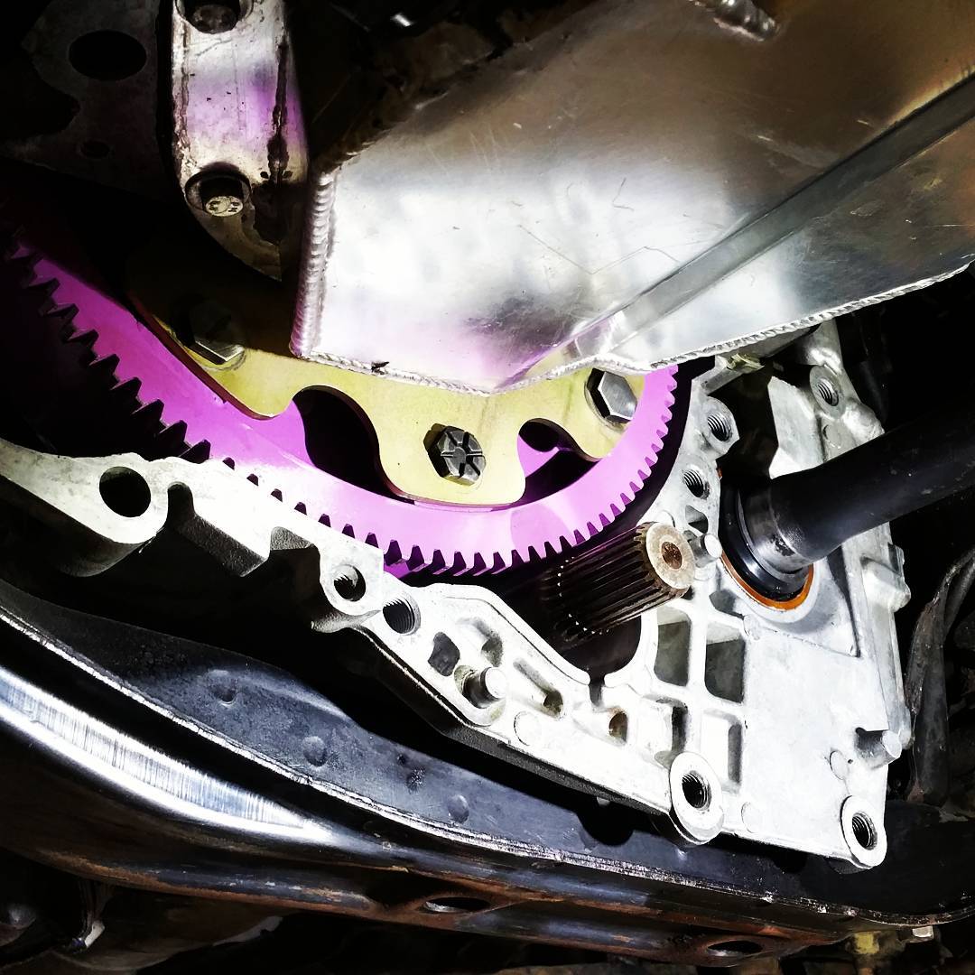 The OEM flexplates are not very strong at all. In fact in the early days of developing the platform flexplates used to be stacked. If you find yourself needing a flexplate then pick up a SFI certified on from Kiggly because the stock flexplate can be used up to somewhere in the 400-500whp range before the converter bolts start being near-impossible to keep tight. Kigglys flexplates are considerably stiffer and thicker, making it load the bolts more purely in shear rather than trying to rock the bolt heads loose. This helps with keeping the bolts tight. Above about 600-700whp, it is really difficult to keep the bolts tight with only 4 bolts and it is a good idea to step up to an 8-bolt converter to go with the Kiggly flexplate.