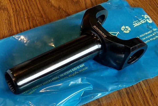 There was an aftermarket slip yoke available. This part is universal when it comes to manual or automatic. However it is only available if you have a driveshaft shop driveshaft for 25 spline transfer case output shafts and your transfer case has a 25 spline 300m output shaft. Its a Sonnax Forged Slip Yoke. This item is discontinued by Sonnax however Driveshaft Shop now uses them. The reason this product is relevant is because the Dana/Spicer slip yoke at the time came on the driveshaft shop driveshaft for 25 spline transfer case output shafts yoke will twist and cause binding in the drive train and can cause serious carnage. This is the resolution to that. Like mentioned Driveshaft Shop now carries these and has replaced the Dana/Spicer cast unit they used to use.