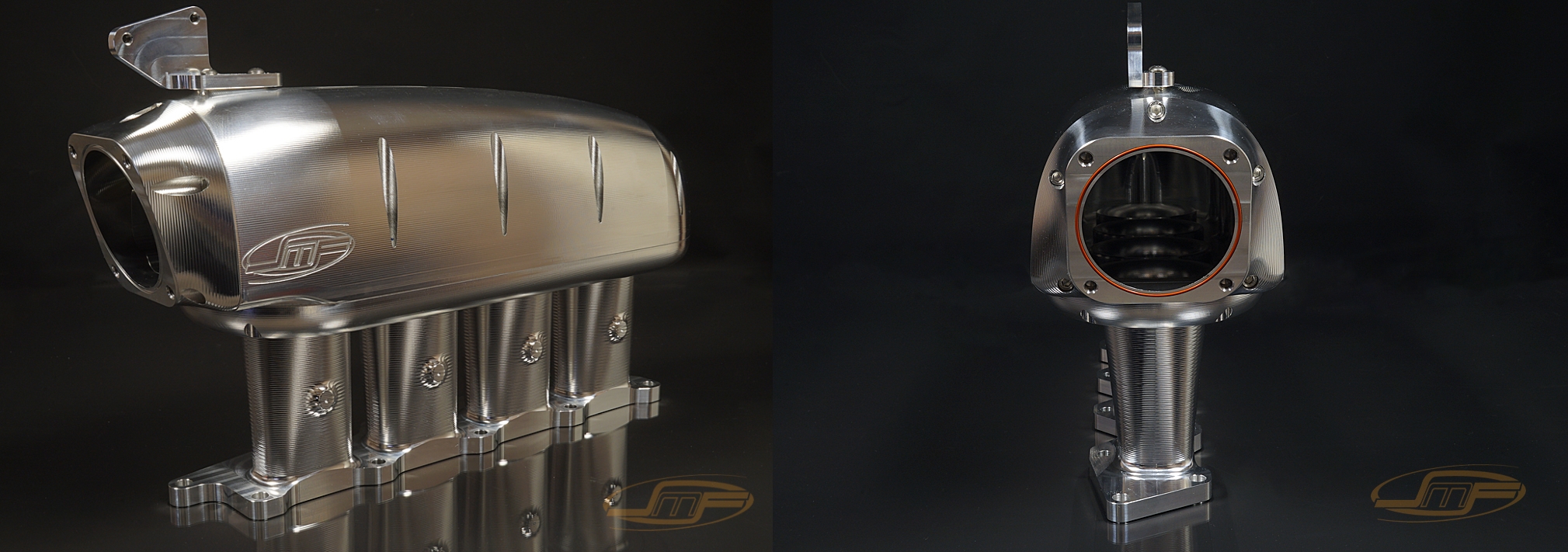 The JMF “RACE” version intake manifold is for the daily driven weekend race warriors who want the best of both worlds, more HP without sacrificing a lot of spool and streetability. With over 10 years of proven results, our budget friendly “RACE” version intake manifold is the best bang for you buck. Our latest revision introduces a CNC machined billet runner section that bolts to the plenum for modular functionality. Expected gains can be anywhere from 10-45 HP based on your setup and tuning. This manifold is good for about 8500-9000 RPM or higher depending on camshaft.