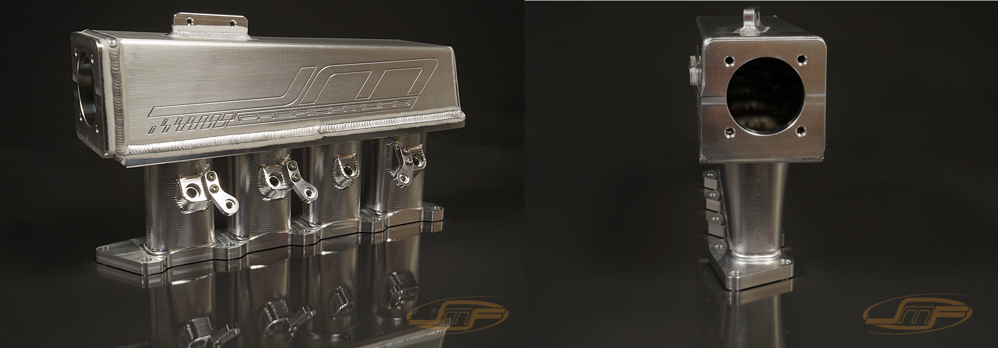The JMF “DRAG” version intake manifold is for the hard core racers putting down serious power. If you need one of the highest flowing 4G63 intake manifolds available look no further. Over a year in the making, our DRAG manifold went through a complete overhaul. No corners were cut when it came to the design and functionality of this manifold. Every component on this manifold is CNC machined from billet aluminum, not a single weld is present. Extensive flow testing was conducted on several prototypes until we found the perfect design with the best balance possible. This manifold is good for about 9000 RPM or higher depending on camshaft.