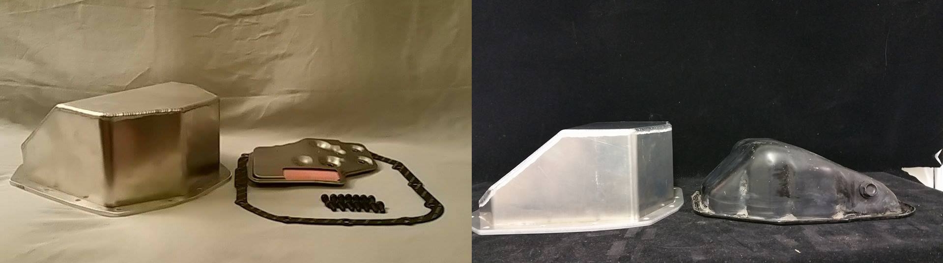 An aftermarket transmission pan brings increased capacity and being aluminum it does assist in cooling. It is also shaped in a way to aid in fluid collection and diverting it to the pickup. The fluid drain plug is also relocated to the lowest point in the pan. JB Designs makes these pans for both 1G and 2G and they come with new filter and gasket.