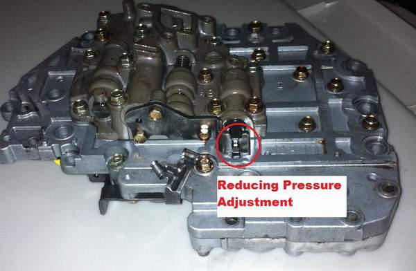 Reducing pressure adjustment is on the bottom side of the valvebody. It should be set to a minimum of line pressure divided by 2.35.3)